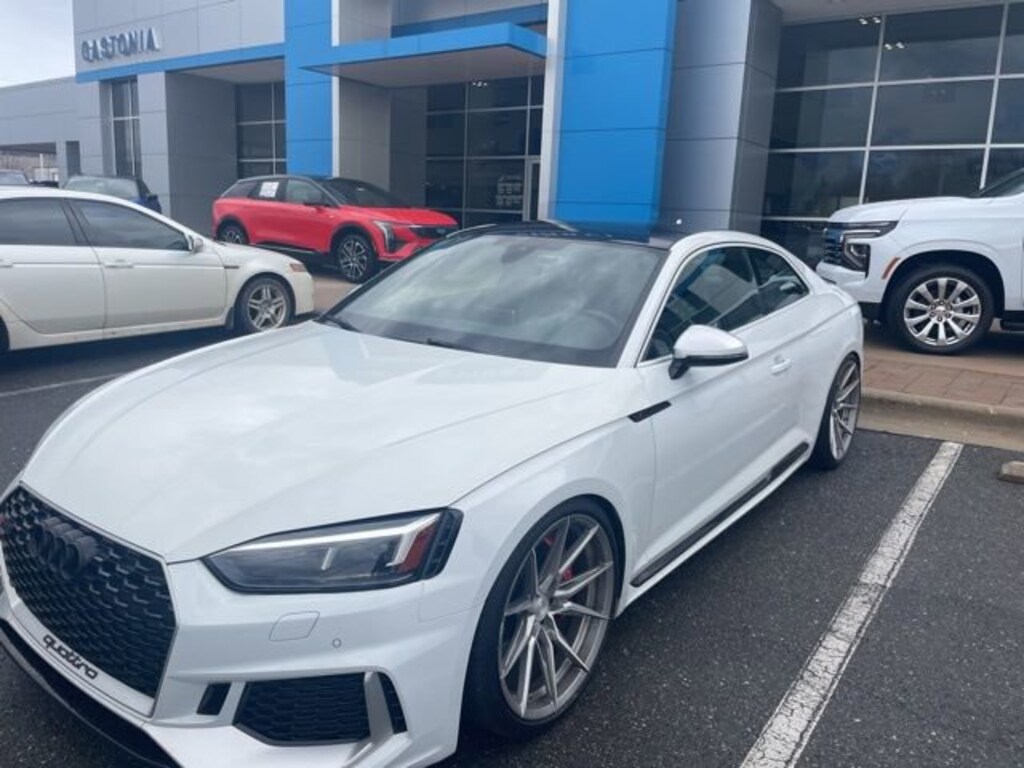 Clean CARFAX.2018 Audi RS 5 2.9T quattro quattro 8-Speed Automatic with Tiptronic 2.9L V6 Turbocharged DOHC 24V LEV3-ULEV70 444hp WhiteTHIS VEHICLE INCLUDES THE FOLLOWING FEATURES AND OPTIONS: 10 Speakers, 4-Wheel Disc Brakes, ABS brakes, Air Conditioning, Alloy wheels, AM/FM radio: SiriusXM, Auto-dimming door mirrors, Auto-dimming Rear-View mirror, Automatic temperature control, Brake assist, Bumpers: body-color, Compass, Delay-off headlights, Driver door bin, Driver vanity mirror, Dual front impact airbags, Dual front side impact airbags, Electronic Stability Control, Emergency communication system: Audi connect CARE, Exterior Parking Camera Rear, Four wheel independent suspension, Front anti-roll bar, Front Bucket Seats, Front Center Armrest, Front dual zone A/C, Front fog lights, Front reading lights, Garage door transmitter: HomeLink, Headlight cleaning, Heated door mirrors, Heated front seats, Heated S Sport Front Seats, Illuminated entry, Knee airbag, Leather Shift Knob, Leather steering wheel, Leather/Alcantara Seating Surfaces, Low tire pressure warning, Memory seat, Occupant sensing airbag, Outside temperature display, Overhead airbag, Overhead console, Panic alarm, Passenger door bin, Passenger vanity mirror, Power door mirrors, Power driver seat, Power moonroof, Power passenger seat, Power steering, Power windows, Radio data system, Radio: Audi Sound System, Rain sensing wipers, Rear air conditioning, Rear anti-roll bar, Rear reading lights, Rear seat center armrest, Rear window defroster, Remote keyless entry, Security system, Speed control, Speed-sensing steering, Speed-Sensitive Wipers, Split folding rear seat, Spoiler, Sport steering wheel, Steering wheel mounted audio controls, Tachometer, Telescoping steering wheel, Tilt steering wheel, Traction control, Trip computer, Turn signal indicator mirrors, Variably intermittent wipers, and Wheels: 19 10-Spoke Forged Star Design.**MOST VEHICLES COME WITH A LIFETIME POWERTRAIN WARRANTY AT NO ADDITIONAL CHARGE-SEE DEALER FOR DETAILS. Excludes: Corvettes and European makes. Ten model years old and newer, under 100,000 miles. We'll buy your vehicle even if you don't buy ours. Shop 24/7 @ GastoniaChevroletBuickGMC.com.Awards:* 2018 KBB.com 10 Most Awarded Brands