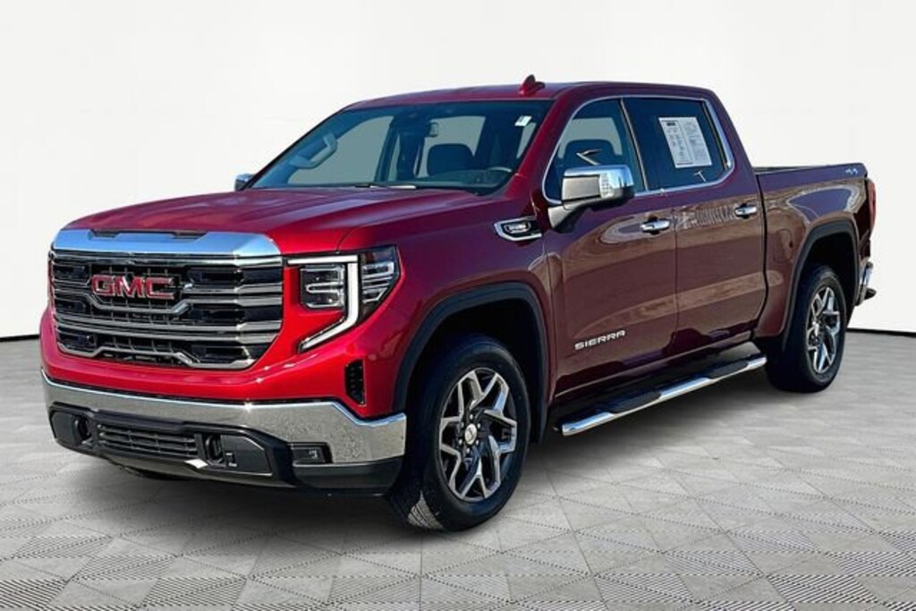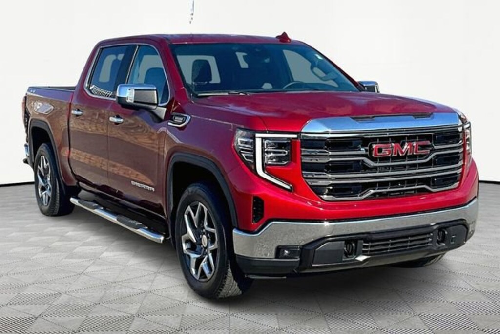 2022 GMC Sierra 1500 SLT 4WD 10-Speed Automatic 3.0L I6 Cayenne Red Tintcoat10-Speed Automatic, 4WD, Jet Black Leather.THIS VEHICLE INCLUDES THE FOLLOWING FEATURES AND OPTIONS: High Capacity Suspension Package, Preferred Equipment Group 4SA (120-Volt Bed Mounted Power Outlet, 120-Volt Instrument Panel Power Outlet, 170 Amp Alternator, 2 Charge/Data USB Ports, 2 Type-C Charge-Only Rear USB Ports, 6-Speaker Audio System Feature, Auto-Locking Rear Differential, Auxiliary External Transmission Oil Cooler, Chrome Header & Chrome Grille Insert Bars, Color-Keyed Carpeting Floor Covering, Compass, Deep-Tinted Glass, Electric Rear-Window Defogger, Electrical Steering Column Lock, Front Frame-Mounted Black Recovery Hooks, Front Rainsensing Wipers, GMC Connected Access Capable, HD Rear Vision Camera, Heated Steering Wheel, Keyless Open & Start, LED Cargo Area Lighting, Manual Tilt-Wheel & Telescoping Steering Column, OnStar & GMC Connected Services Capable, Perimeter Lighting, Power Door Locks, Power Front Passenger Windows w/Express Up/Down, Power Front Windows w/Driver Express Up/Down, Power Rear Windows w/Express Down, Push Button Start, Rear Wheelhouse Liners, Remote Vehicle Starter System, SiriusXM w/360L, Steering Wheel Audio Controls, Theft Deterrent System (Unauthorized Entry), Wi-Fi Hotspot Capable, and Wireless Phone Projection), ProGrade Trailering System (Hitch Guidance w/Hitch View, In-Vehicle Trailering App, and Integrated Trailer Brake Controller), SLT Convenience Package (2 Charge/Data USB Ports Inside Center Console, Electronic Precision Shift, Floor-Mounted Center Console, Front Bucket Seats, Power Rake & Telescoping Steering Column, Premium Bose 7-Speaker Sound System, Ventilated Driver & Front Passenger Seats, and Wireless Charging), SLT Premium Package (20 Polished Aluminum Wheels and Chrome Wheel To Wheel Assist Steps), Standard Suspension Package, Trailering Package (Hitch Guidance), 10-Speed Automatic, 4WD, Jet Black Leather, 10-Way Power Driver Seat Adjuster w/Lumbar, 10-Way Power Passenger Seat Adjuster w/Lumbar, 220 Amp Alternator, 3.23 Rear Axle Ratio, 4-Wheel Disc Brakes, 6 Speakers, ABS brakes, Air Conditioning, Alloy wheels, AM/FM radio: SiriusXM with 360L, Apple CarPlay/Android Auto, Auto High-beam Headlights, Auto-dimming door mirrors, Auto-dimming Rear-View mirror, Automatic Emergency Braking, Automatic temperature control, Brake assist, Buckle to Drive, Bumpers: chrome, Delay-off headlights, Driver door bin, Driver Memory, Driver vanity mirror, Dual front impact airbags, Dual front side impact airbags, Electronic Stability Control, Emergency communication system: OnStar and GMC Connected Services capable, Engine Block Heater, Exterior Parking Camera Rear, Following Distance Indicator, Forward Collision Alert, Front 40/20/40 Split-Bench Seat, Front anti-roll bar, Front Center Armrest w/Storage, Front dual zone A/C, Front fog lights, Front Pedestrian Braking, Front reading lights, Front wheel independent suspension, Fully automatic headlights, Heated door mirrors, Heated Driver & Front Outboard Passenger Seating, Heated front seats, Heated steering wheel, Illuminated entry, IntelliBeam Automatic High Beam On/Off, Lane Keep Assist w/Lane Departure Warning, Low tire pressure warning, Memory seat, Navigation System, Not Equipped w/Heated Steering Wheel (DISC), Occupant sensing airbag, Outside temperature display, Overhead airbag, Overhead console, Panic alarm, Passenger door bin, Passenger vanity mirror, Perf Leather-Appointed Front Outboard Seat Trim, Power door mirrors, Power driver seat, Power passenger seat, Power steering, Power windows, Premium audio system: GMC Infotainment System, Radio data system, Radio: Premium GMC Infotainment Audio System, Rain sensing wipers, Rear reading lights, Rear seat center armrest, Rear step bumper, Rear window defroster, Remote keyless entry, Security system, Speed control, Speed-sensing steering, Split folding rear seat, Spray-On Pickup Bed Liner w/GMC Log