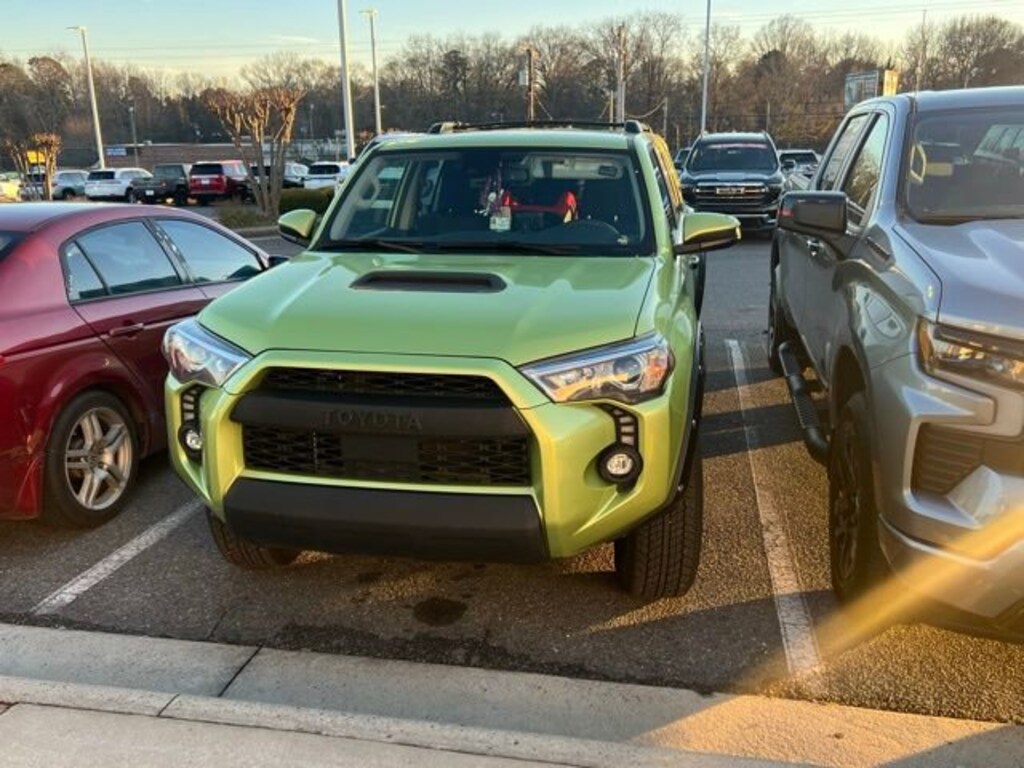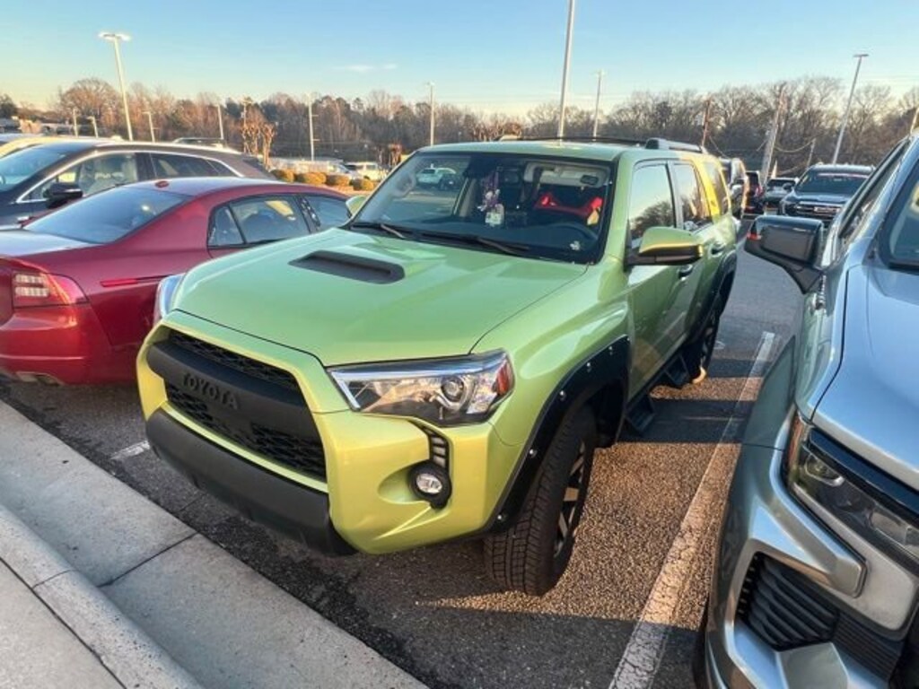 Clean CARFAX.2023 Toyota 4Runner TRD Off-Road 4WD 5-Speed with ECT 4.0L V6 DOHC 24V Lime4WD, Graphite Cloth.THIS VEHICLE INCLUDES THE FOLLOWING FEATURES AND OPTIONS: Off Road Package (Black Roof Rails), 4WD, Graphite Cloth, 3.727 Axle Ratio, 4-Wheel Disc Brakes, 8 Speakers, ABS brakes, Air Conditioning, Alloy wheels, AM/FM radio: SiriusXM, Anti-whiplash front head restraints, Apple CarPlay/Android Auto, Auto High-beam Headlights, Brake assist, Bumpers: body-color, Compass, Driver door bin, Driver vanity mirror, Dual front impact airbags, Dual front side impact airbags, Electronic Stability Control, Emergency communication system: Safety Connect (1-year trial), Exterior Parking Camera Rear, Fabric Seat Trim, Front anti-roll bar, Front Bucket Seats, Front Center Armrest, Front fog lights, Front reading lights, Front wheel independent suspension, Heated door mirrors, Illuminated entry, Knee airbag, Leather Shift Knob, Low tire pressure warning, Occupant sensing airbag, Outside temperature display, Overhead airbag, Overhead console, Panic alarm, Passenger door bin, Passenger vanity mirror, Power door mirrors, Power driver seat, Power steering, Power windows, Radio: Audio Plus, Rear anti-roll bar, Rear seat center armrest, Rear window defroster, Rear window wiper, Remote keyless entry, Security system, Speed control, Speed-sensing steering, Split folding rear seat, Spoiler, Steering wheel mounted audio controls, Tachometer, Telescoping steering wheel, Tilt steering wheel, Traction control, Trip computer, Variably intermittent wipers, and Wheels: 17 Unique 7-Spoke Off-Road Alloy.**MOST VEHICLES COME WITH A LIFETIME POWERTRAIN WARRANTY AT NO ADDITIONAL CHARGE-SEE DEALER FOR DETAILS. Excludes: Corvettes and European makes. Ten model years old and newer, under 100,000 miles. We'll buy your vehicle even if you don't buy ours. Shop 24/7 @ GastoniaChevroletBuickGMC.com.